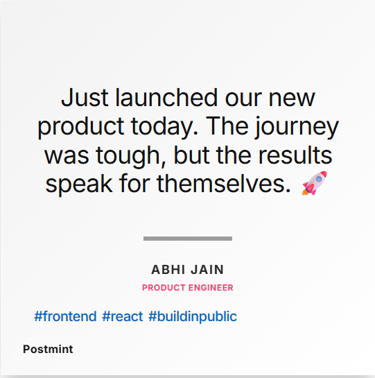 Postmint is a LinkedIn post image generator designed to help creators, developers, and founders create high-quality, viral-ready content in seconds. You simply write your content, choose a clean design, and Postmint instantly converts it into a visually engaging post image optimized for LinkedIn.